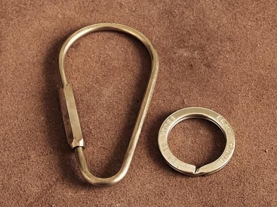 オール真鍮製 カラビナキーリング ゴールド (オーバル)