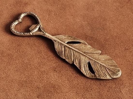真鍮 ボトル オープナー(フェザー)羽根 飾り 鳥 栓抜き アウトドア