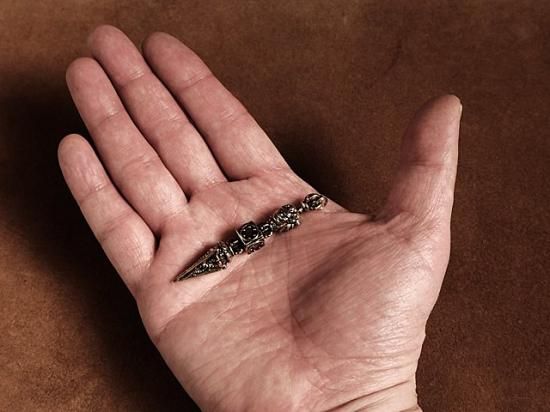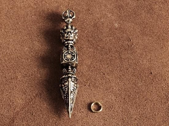 真鍮 プルパキーホルダー(3面憤怒尊 キューブ)