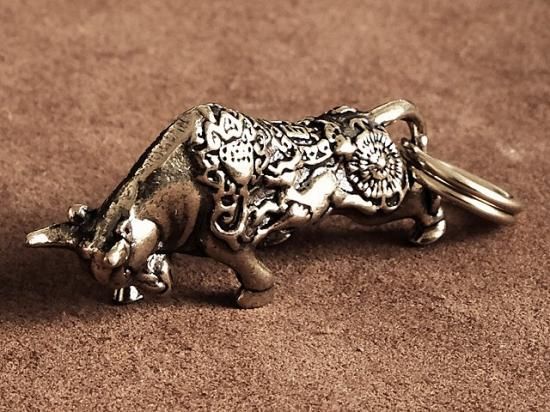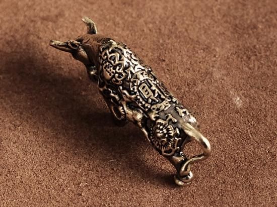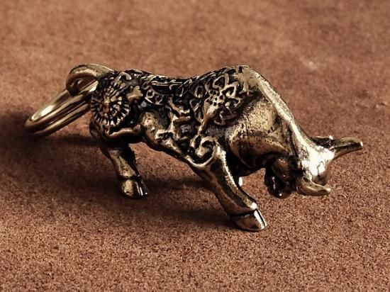 牛 キーホルダー(鎧) 真鍮 うし 角 カウ バッファロー