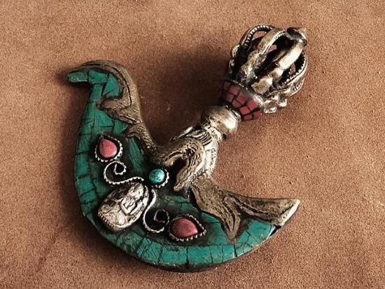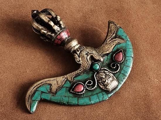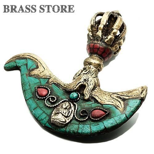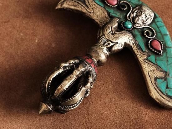 真鍮 カルタリ(ターコイズ装飾)ブラス 密教法具 チベット ネパール 金剛杵