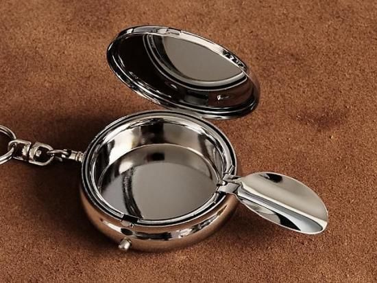 シルバー 携帯灰皿(レバーナスカン付き)アッシュトレイ 銀色