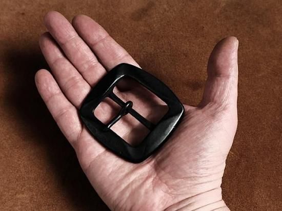 真鍮 レザーベルト用バックル スクエア(ブラック 四隅凹み)ベルト幅38mm