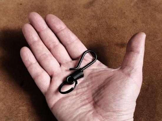 鉄製リング付き 真鍮 ブラス ツリバリ回転 フック キーリング ( ブラック)