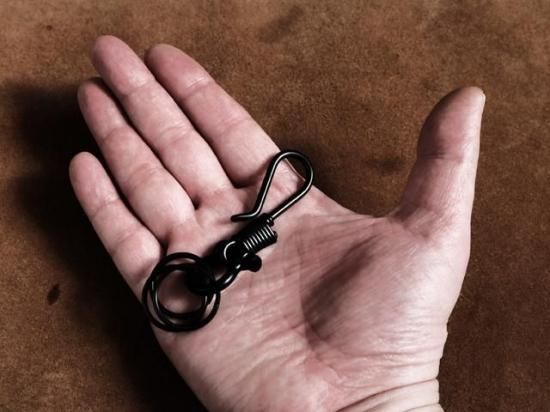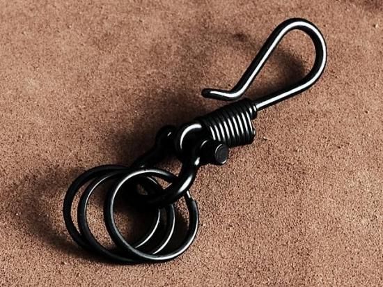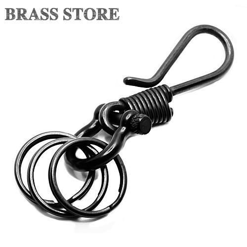 鉄製リング付き 真鍮 ブラス ツリバリ回転 フック キーリング ( ブラック)