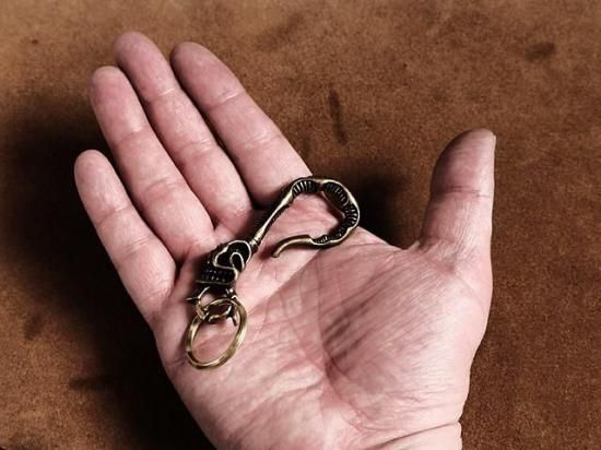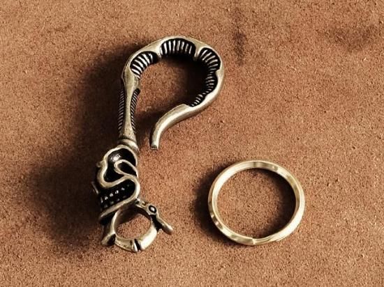 オリジナル二重リング付き 真鍮 カラビナキーホルダー(龍デザイン)