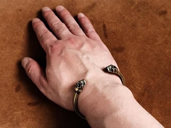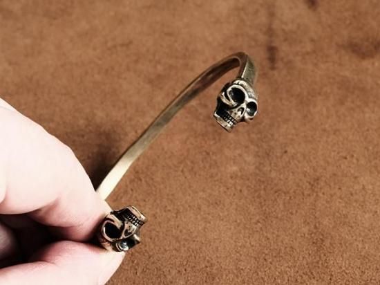 真鍮 バングル(スカルデザイン)ブラス ブレスレット 腕輪 ガイコツ ドクロ