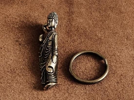 涅槃像をモチーフとした真鍮キーホルダー。