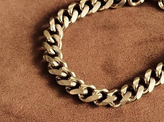 真鍮喜平チェーンを使用したウォレットチェーンです。