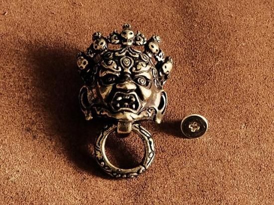 真鍮 ドロップハンドル(金剛手菩薩)ドクロ ポスト トチカン 財布 金具 パーツ