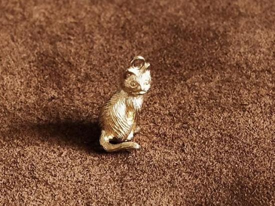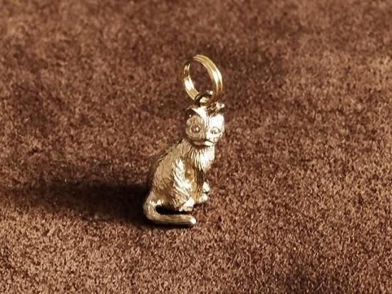 真鍮 チャーム(猫 立体)キーリング ネコ ペット シルエット キャット