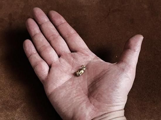 オール真鍮 勾玉 カラビナキーホルダー(三角押し二重リング)