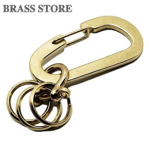 オール真鍮製 カラビナキーリング ゴールド (オーバル)