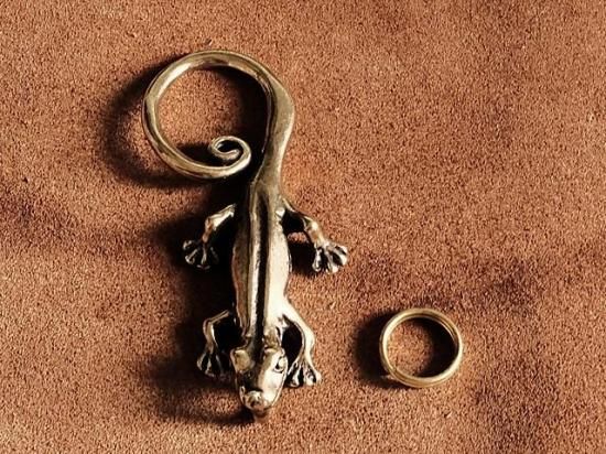 真鍮 キーホルダー(トカゲ 尻尾くるくる)爬虫類 とかげ